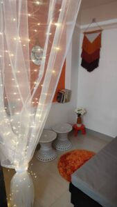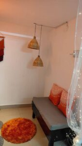The warm, handcrafted décor and natural light create a peaceful, comfortable atmosphere — perfect for couples, small families, or friends looking for a stylish yet homely stay. Fully equipped with all the modern amenities you need, our boho-themed retreat is your personal sanctuary in Pondicherry.