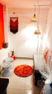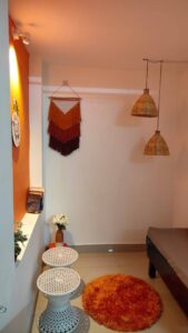 Step into a cozy, earthy retreat where rattan textures, vintage accents, and soulful decor create a bohemian escape. A haven for storytellers and dreamers, it invites you to curl up with a book, sip chai on a floor cushion, or simply breathe deep in the calm.